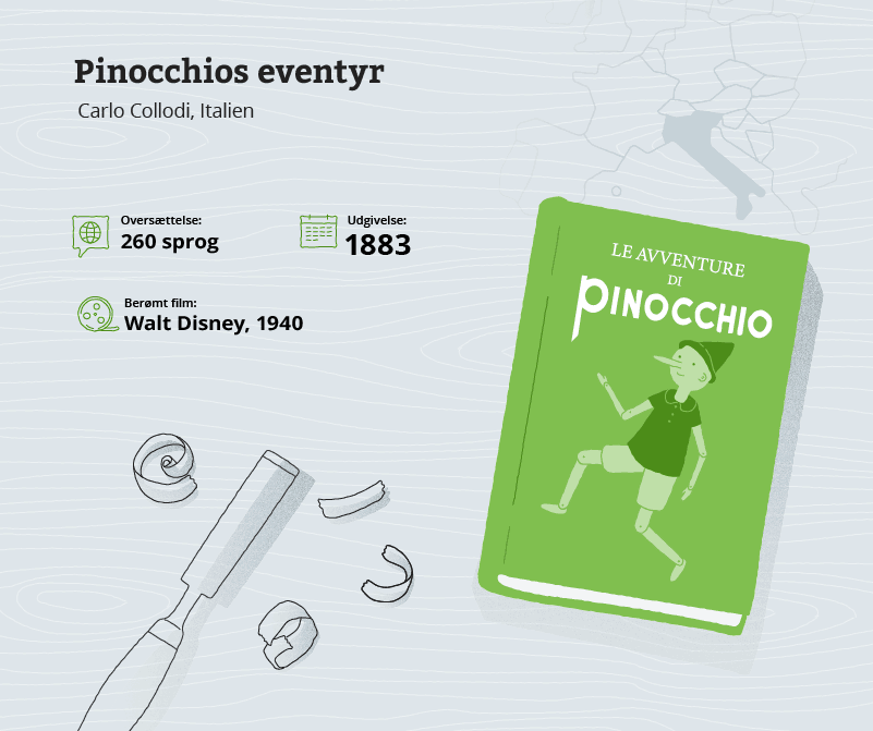 Pinocchios eventyr, også bedre kendt som Pinocchio, er skrevet i 1883 af den italienske forfatter Carlo Collodi og er oversat til mere end 260 sprog og dialekter.