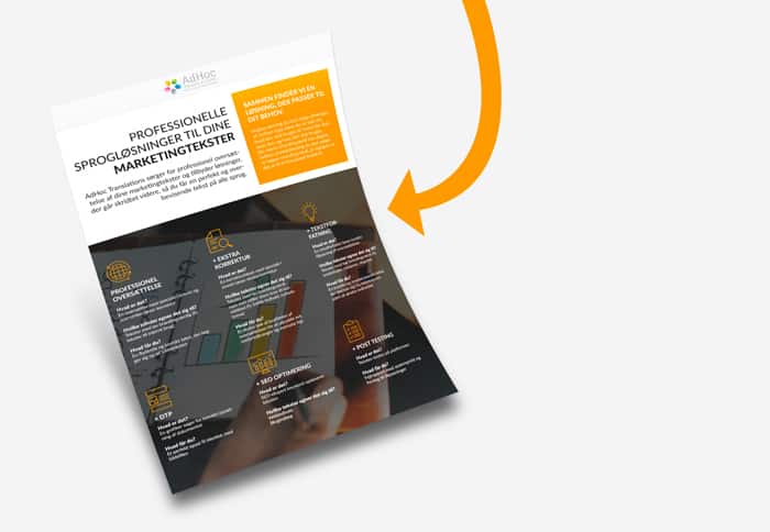 Traduisez votre contenu marketing afin d’attirer l’attention de votre public cible dans n’importe quelle langue et d’assurer le succès mondial de votre entreprise. AdHoc Translations propose une traduction professionnelle de vos contenus marketing et des solutions qui vont plus loin pour vous garantir un texte marketing parfait et convaincant dans toutes les langues.