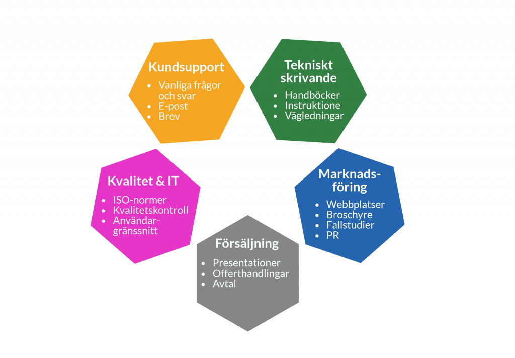 Det är inte bara avdelningar för teknisk dokumentation och deras tekniska skribenter som är beroende av terminologi för att kunna utföra sitt arbete och leverera en professionell produkt. Andra avdelningar inom företaget kan också dra stor nytta av att ha tillgång till en termbas, så att de kan använda rätt terminologi och därmed leverera en professionell produkt som ger den bästa kundupplevelsen. Det gäller bland annat marknadsföringsavdelningen, som utformar broschyrer, hemsidor osv., försäljningsavdelningen som skapar presentationer, kampanjer, e-learning osv. och kundserviceavdelningen som tar fram avsnitt med frågor och svar och svarar på kundernas frågor.